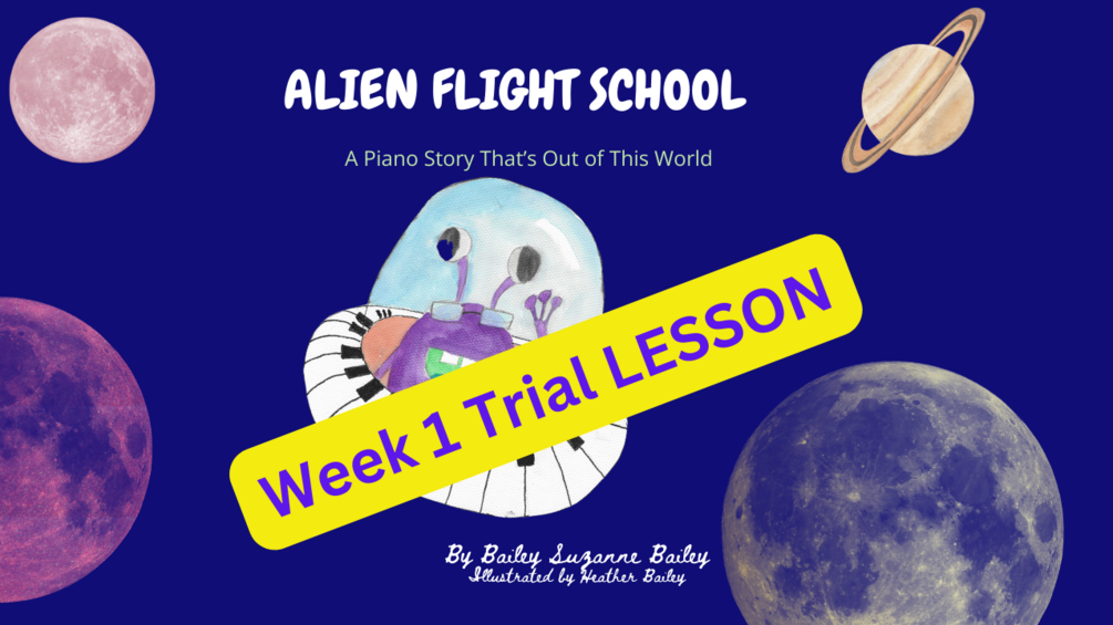 A free trial lesson of Alien Flight School Piano Course level 1A